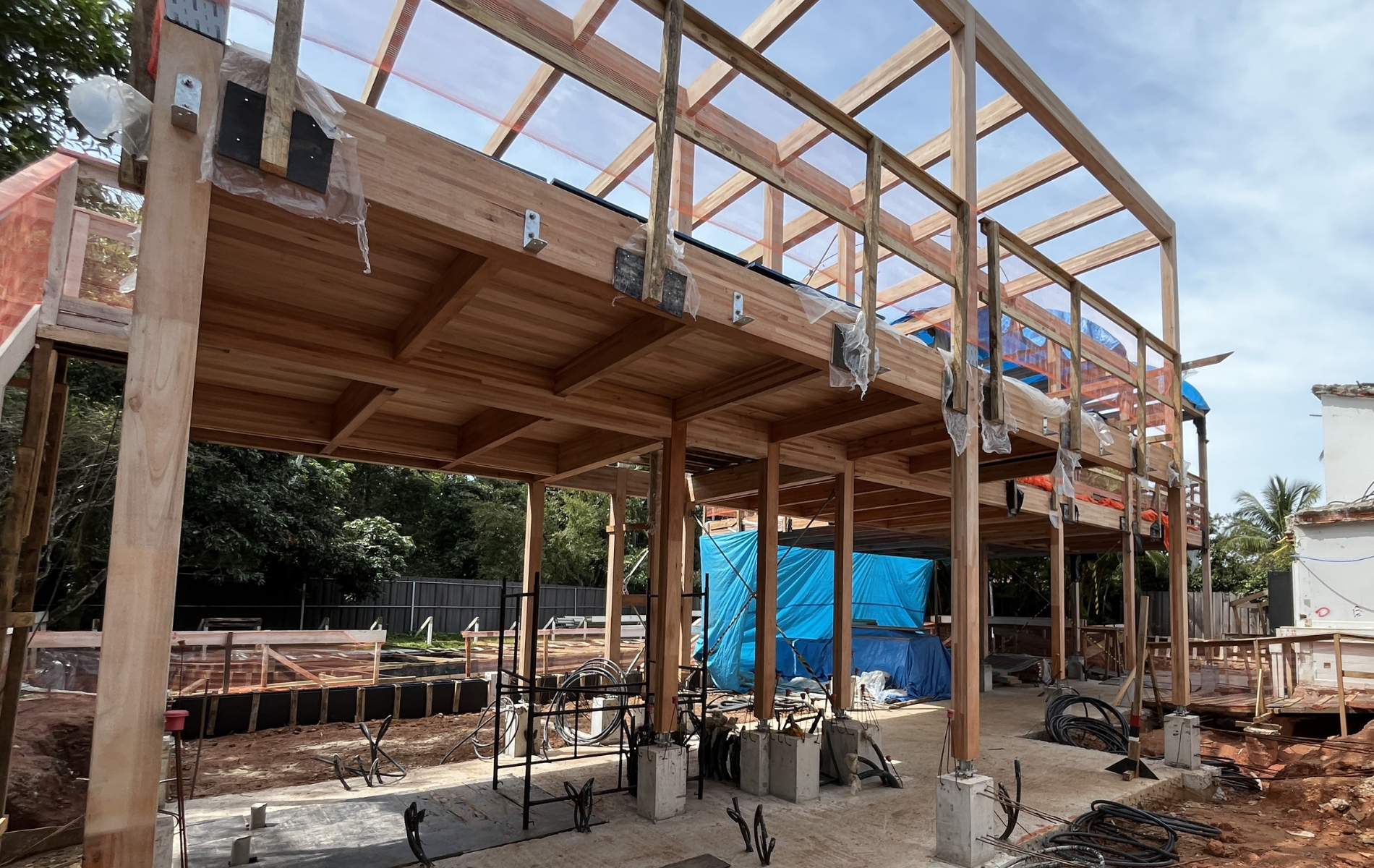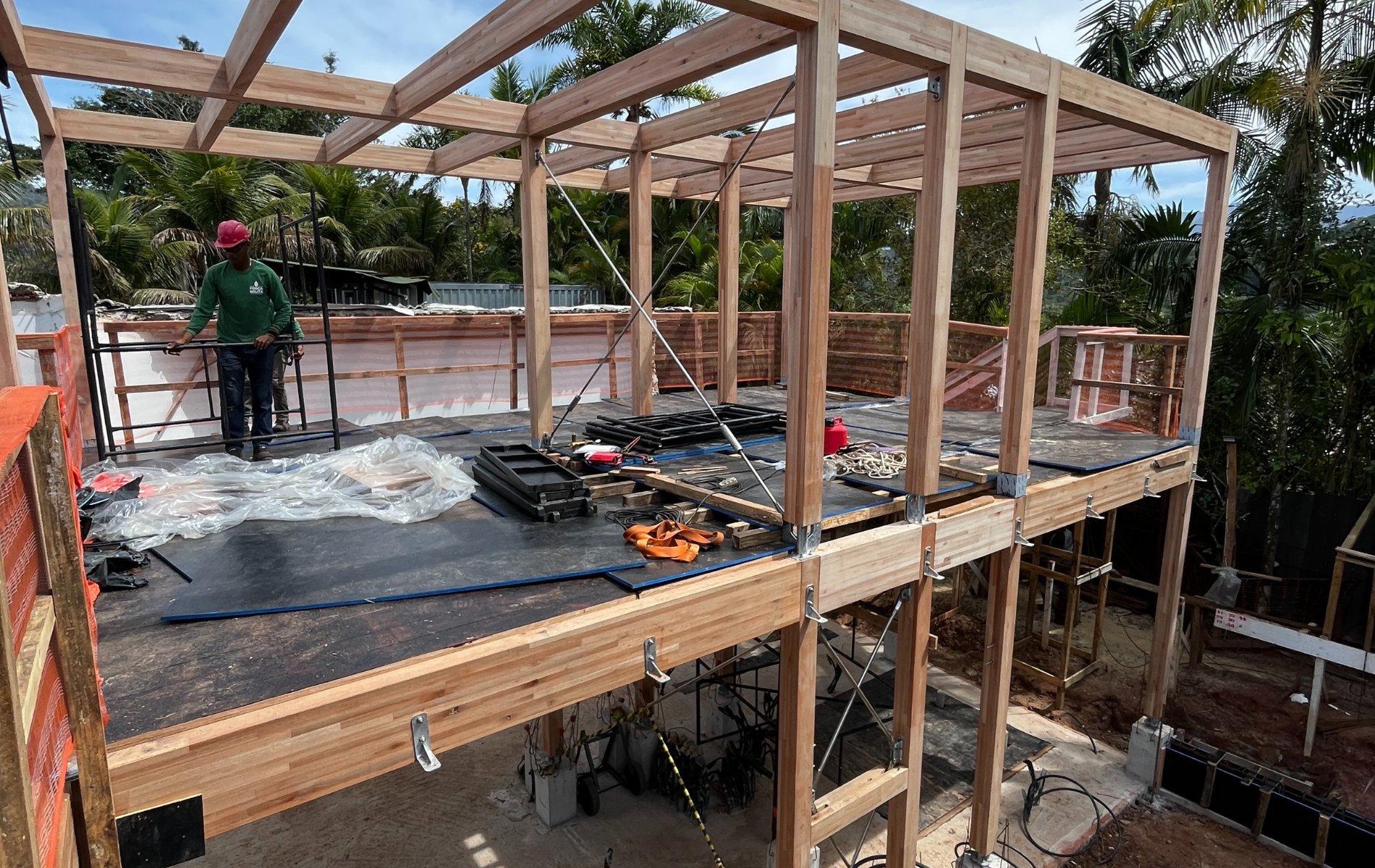 Atualmente, a obra encontra-se na fase de montagem da estrutura de madeira. Nas próximas semanas, está prevista a execução dos fechamentos provisórios.